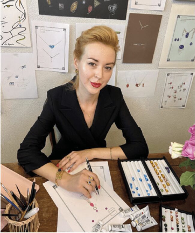 La collaboration avec Valeriya, créatrice de designs de bijoux, a débuté en 2018 à Genève, marquant le premier jalon d‘une aventure artistique et culturelle. Historienne de l‘art diplômée de l‘Université de Lausanne (UNIL), experte en art, curatrice de collections prestigieuses et dessinatrice, Valeriya apporte à ALPENGEM une vision unique mêlant raffinement artistique et inspiration culturelle. Depuis plusieurs années, elle conçoit des collections de bijoux exclusives pour la marque, enrichissant chaque création de sa sensibilité esthétique et de son expertise. Ensemble, Jeanne et Valeriya s’efforcent de répondre aux attentes d’une clientèle exigeante, en créant des pièces sophistiquées qui célèbrent la beauté intemporelle des gemmes et la singularité de chaque client.