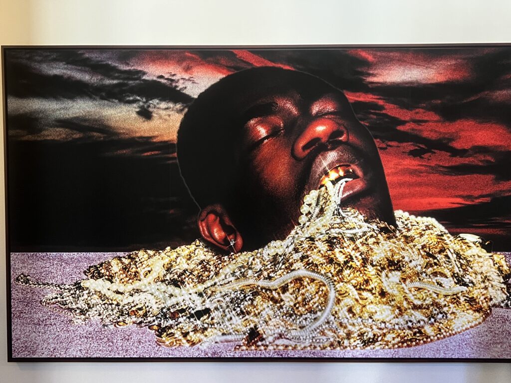 Le lieu, déjà, est digne d’être mentionné. Trois maisons bourgeoises citadines du 18e, réunie par des escaliers et des passerelles, autrefois propriété d’une banque privée. Elles forment un dédale de plus de cent pièces de niveaux différents allant de la cave au grenier. Curateur et artiste de renom Klaus Littman co-leader du projet FOR ART gère le lieu. On s’y perd avec bonheur au gré des pièces d’exposition. Volontairement iconoclaste dans sa conception curatoriale, il n’y a ni ordre, ni parcours et encore moins de volonté didactique, si ce n’est que les œuvres exposées explorent des thèmes liés au système de valeur et au commerce qui fait écho à l’activité historique du lieu. Le visiteur va son chemin au gré des stimuli dans ce cabinet de curiosités.