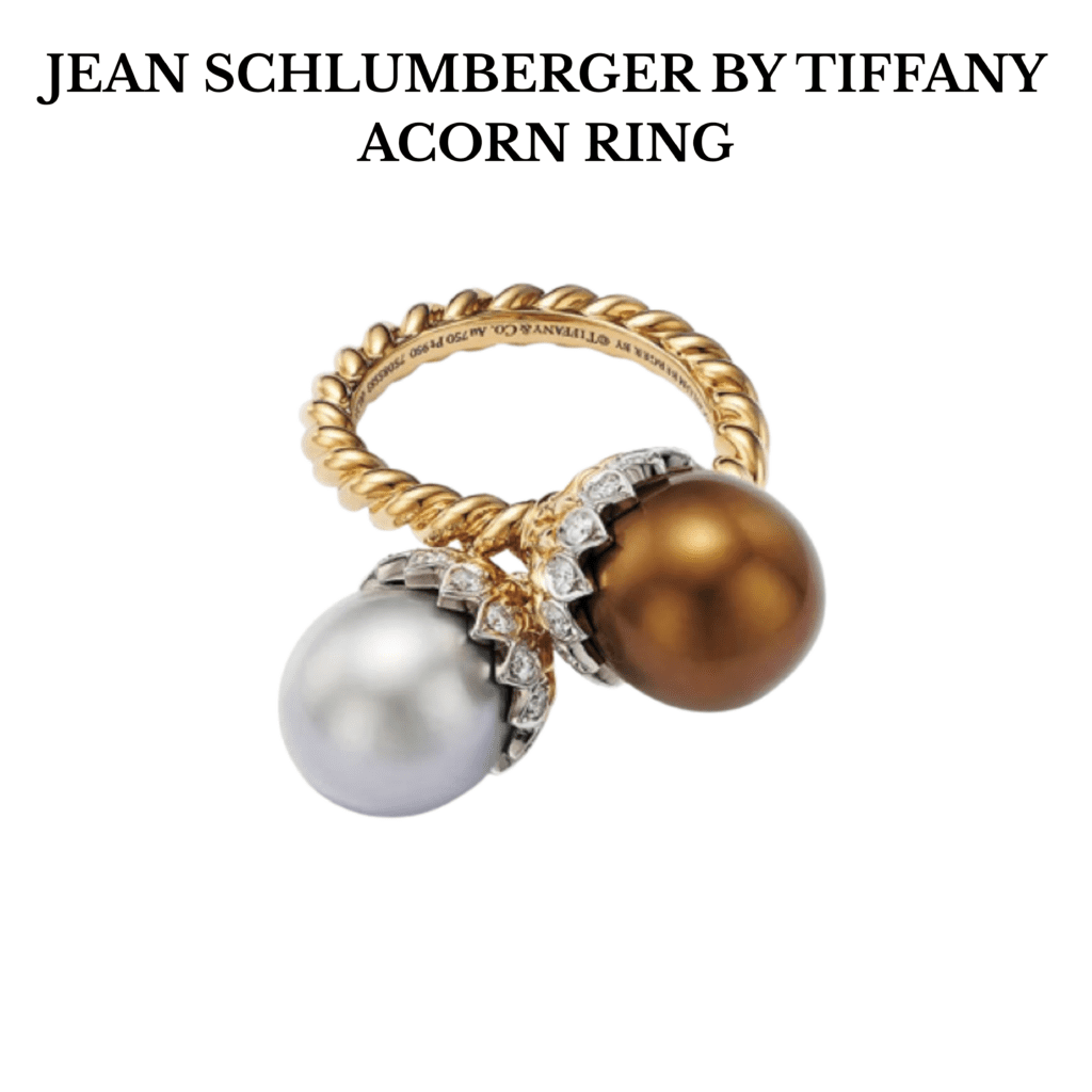Plus que l’oiseau, la collection capsule Bird on a Pearl rappellent également d’autres motifs emblématiques de Jean Schlumberger, tels que les glands et feuilles de chêne (Acorn et Oak Leaf), les asymétries de la flore (Cascade), et les rubans (Ribbons).