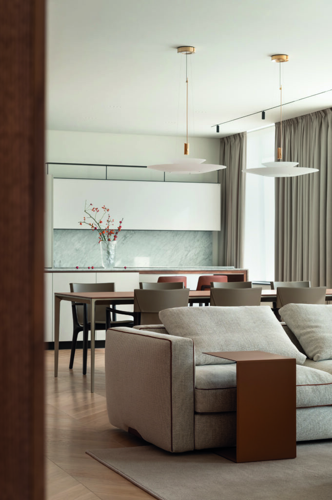 À Genève, la première réalisation du bureau d’architecte a été la rénova- tion d’une sublime villa à Cologny. Propulsant le studio sur le devant de la scène locale, ce projet offre un dialogue élégant entre bois et marbre, des espaces sobres avec du mobilier Roche Bobois, ainsi qu’un éclairage do- motique programmé selon différentes ambiances lumineuses souhaitées par le client.
