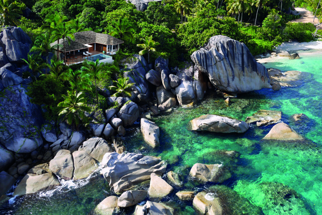 Sur l’île privée de Félicité, rochers de granit, plages de sable blanc et jungle tropicale composent un décor emblématique des Seychelles. Au cœur de ce paysage préservé, Six Senses Zil Pasyon déploie 28 villas audacieuses, épousant la nature et ouvertes sur l’océan. L’architecture se fond dans les reliefs, le spa se niche entre les blocs granitiques et l’expérience s’inscrit dans une vision durable: restauration des récifs coralliens, protection des tortues marines, implication auprès des communautés locales.
