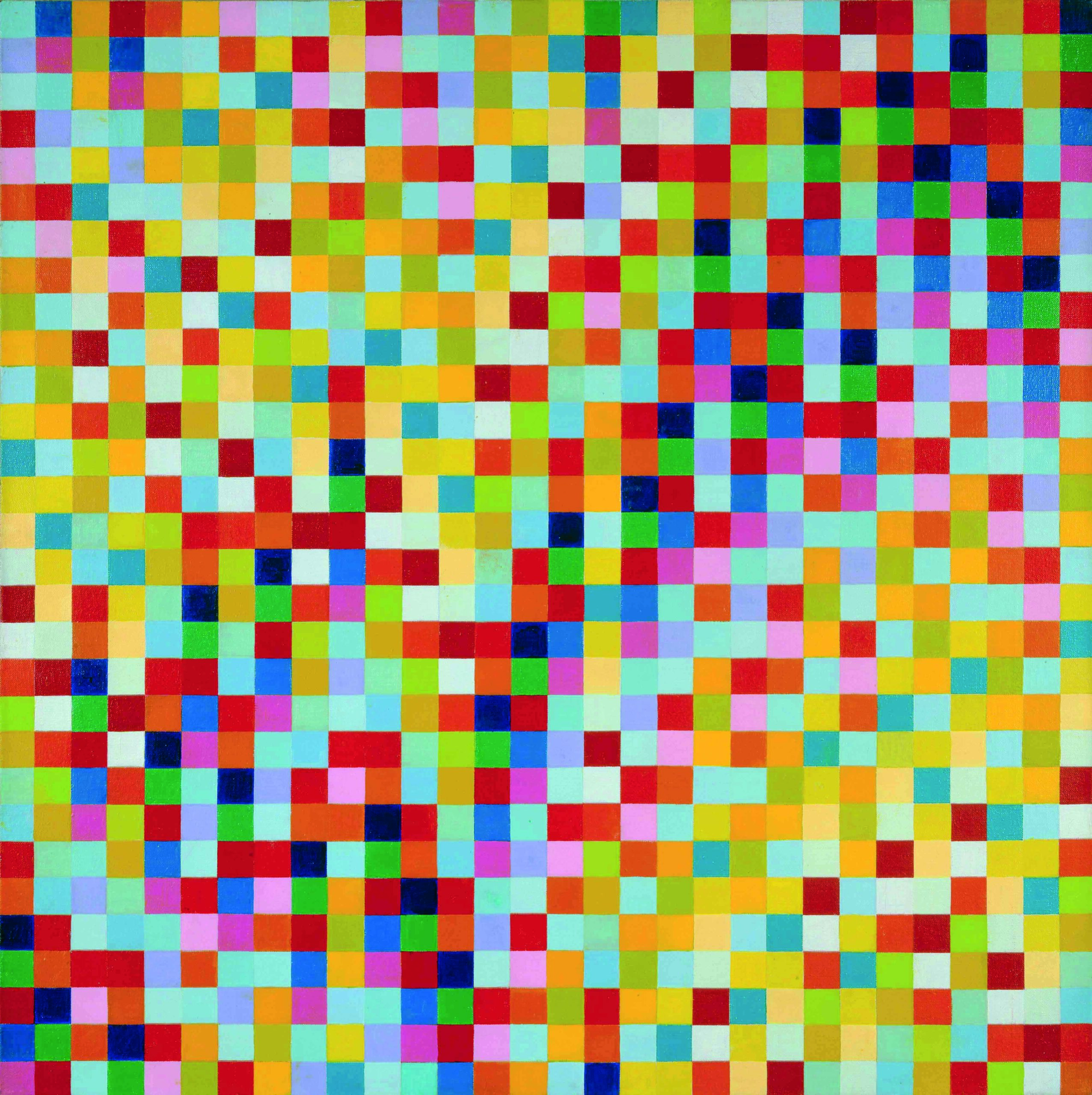 C’est après une carrière de graphiste qu’il abandonne à 40 ans que l’artiste s’intéresse à l’imaginaire constructif-concret. Il est fasciné par l’unité entre la surface picturale et les éléments qui la composent qu’il retrouve dans certaines toiles du mouvement hollandais De Stijl ainsi que chez les constructivistes russes. Richard Paul Lohse développe rapidement sa propre vision et se tourne vers une abstraction basée sur des moyens d’expression rigoureux répondant à la série et à la répétition, formant ainsi dans ses toiles des ondes colorées vibrantes qui ne sont naturellement pas le fruit du hasard. En effet, ses grilles colorées se conforment à des systèmes précis dans lesquels les champs de couleurs carrés et rectangulaires interagissent entre eux selon des règles mathématiques. L’œuvre de cet artiste hors norme est fondée sur la raison et donc explicable de manière rationnelle, c’est pour cela qu’il se plaisait à dire, par provocation sans doute: «Je pourrais facilement envoyer mes œuvres par téléphone».