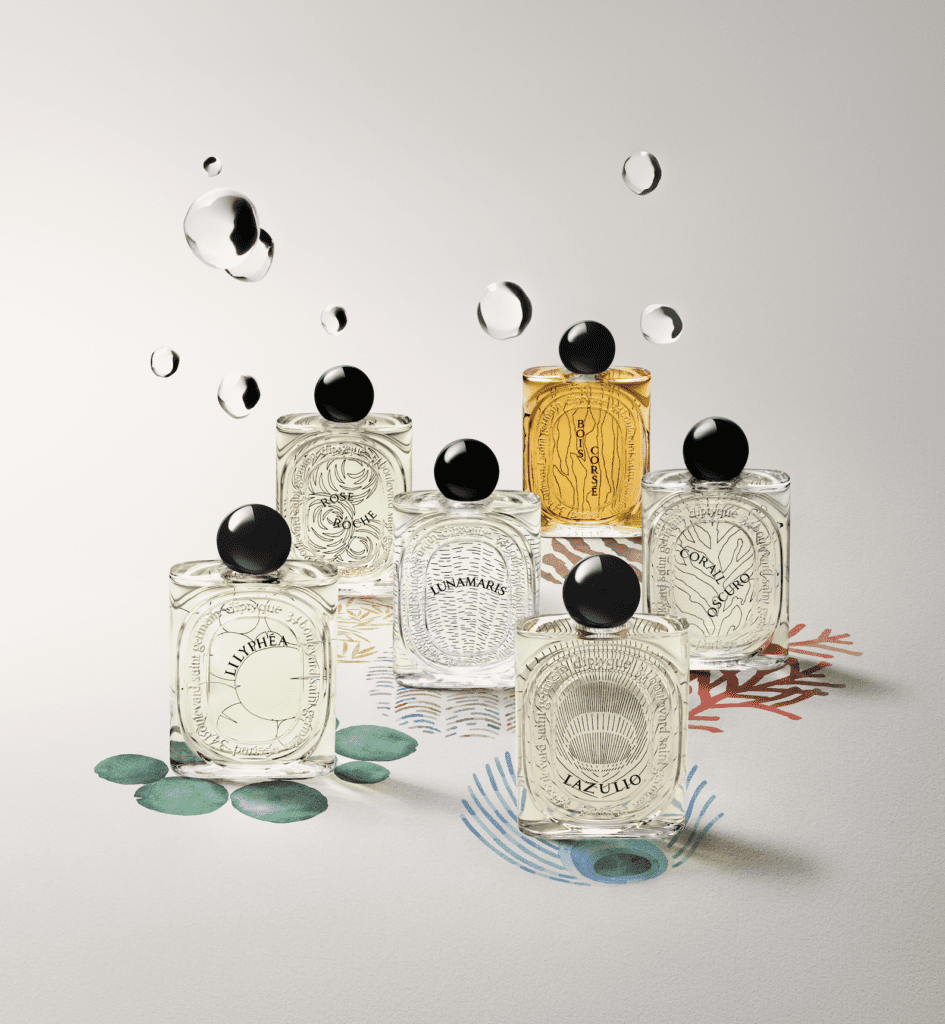 En septembre 2025, Diptyque dévoile Lazulio, ode à la profondeur cristalline et lumineuse du lapis-lazuli. La vivacité acidulée de la rhubarbe se mêle aux notes onctueuses du benjoin, offrant à cette fragrance une chaleur enveloppante et irrésistible. Le vétiver d’Haïti, aux reflets boisés et hespéridés, intensifie ce sillage, qu’une délicate touche de rose vient éclairer avec élégance. Le flacon iconique des Essences de Diptyque reprend la forme ovale signature de la Maison avec en son cœur une plume de paon dessinée par l’artiste Nigel Peake.