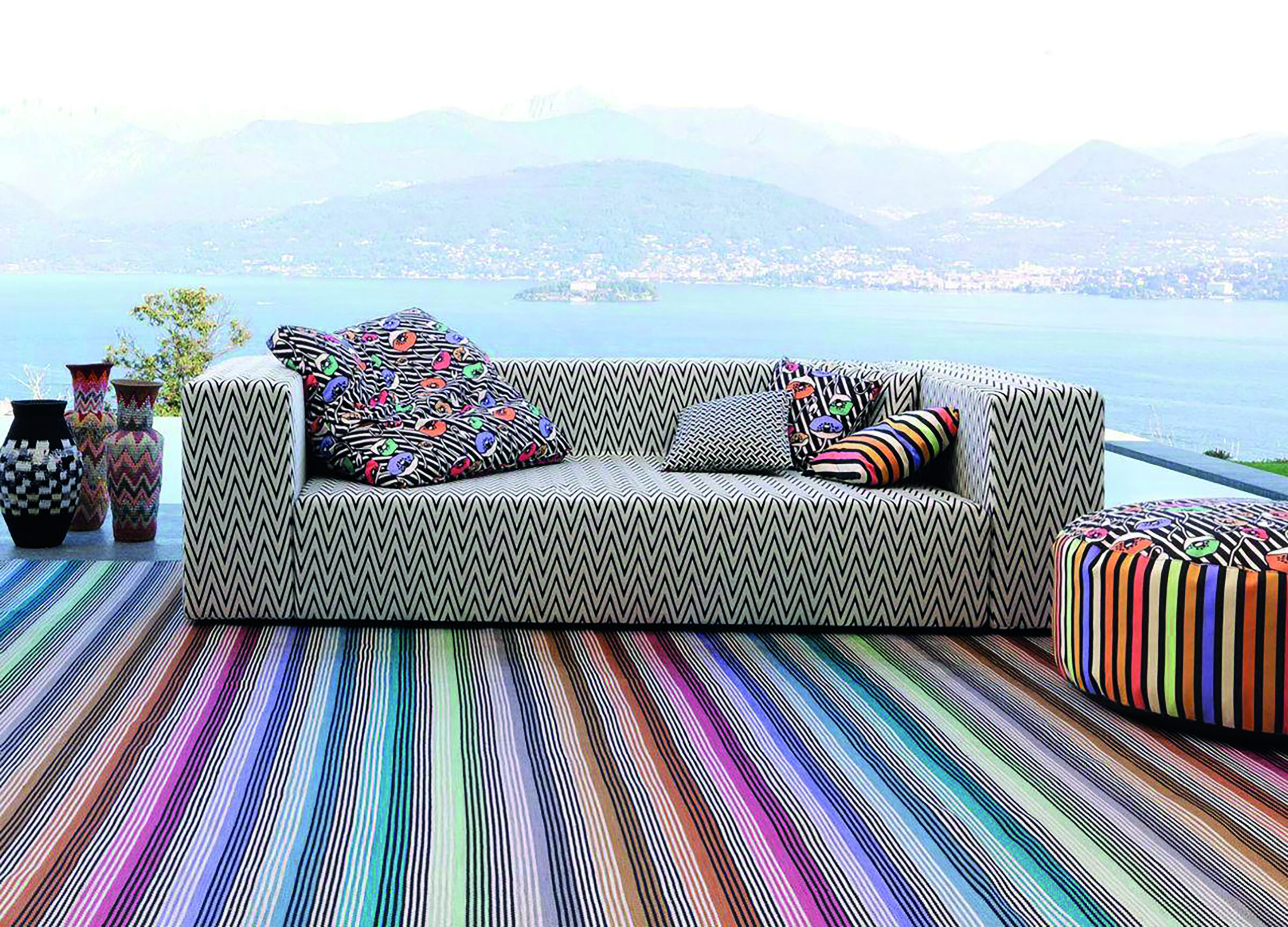 Explosion de motifs et de couleurs, Missoni Home traduit la joie et la vitalité de l’Italie des sixties. Zigzags emblématiques, teintes solaires etmatières légères insufflent un optimisme chromatique à chaque espace. Un intérieur Missoni est un tableau vibrant où la maison respire la créa- tivité.