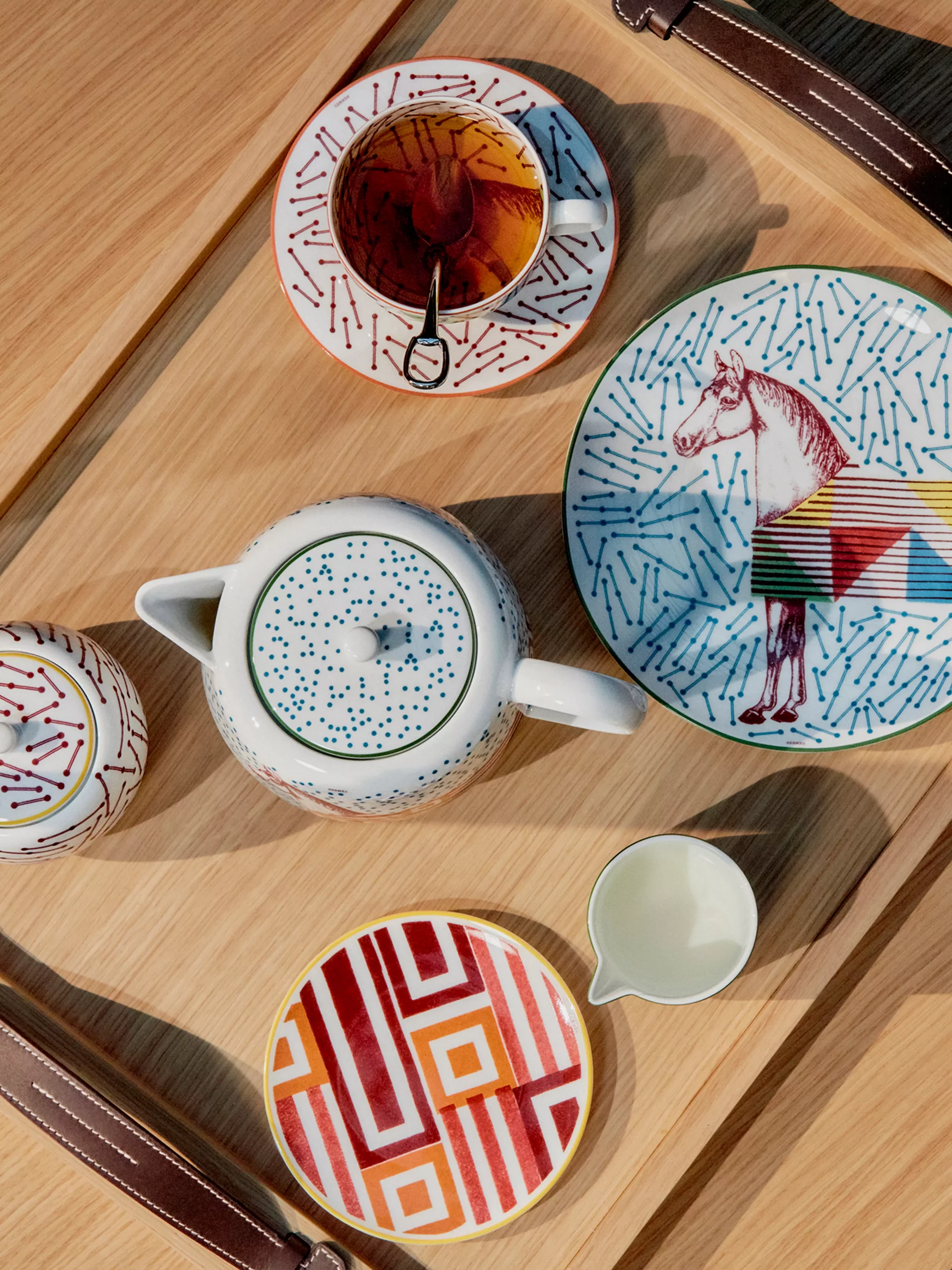 Symbole d’un luxe silencieux, Hermès fait dialoguer cuir, bois et porce- laine dans un univers d’équilibre et de rigueur. Ses créations privilégient la simplicité formelle et la perfection du geste artisanal. L’élégance y devient intemporelle, entre savoir-faire équestre et design contemporain.