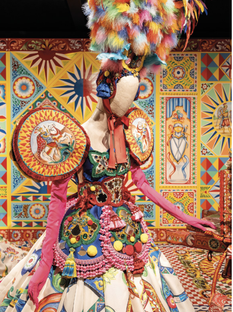 Après un lancement très réussi au Palazzo Reale de Milan, où elle a été saluée par un sold out complet, l’exposition débarque au Grand Palais, deuxième étape de sa tournée mondiale réunissant pour la première fois plus de 200 des créations uniques de la maison de mode de luxe. Du Cœur à la Main : Dolce & Gabbana est une déclaration d’amour à la culture italienne, source d’inspiration constante de Domenico Dolce et Stefano Gabbana. Retraçant l’itinéraire esthétique de leurs créations, d’abord portées dans leur cœur, puis exécutées à la main dans leurs ateliers, l’exposition présente également les travaux inédits d’artistes contemporains qui dialoguent avec l’univers de Dolce&Gabbana et la culture. De nombreuses références à des oeuvres d’art italiennes et flamandes se retrouvent souvent comme des morceaux de tapisserie sur les étoffes. L’exposition est conçue en « tableaux ». Les vêtements sont les acteurs d’une mise en scène, dans chaque salle renouvelée avec une symbolique précise. Une des plus extraordinaires est sans doute l’hommage que les deux couturiers font à la Sicile.