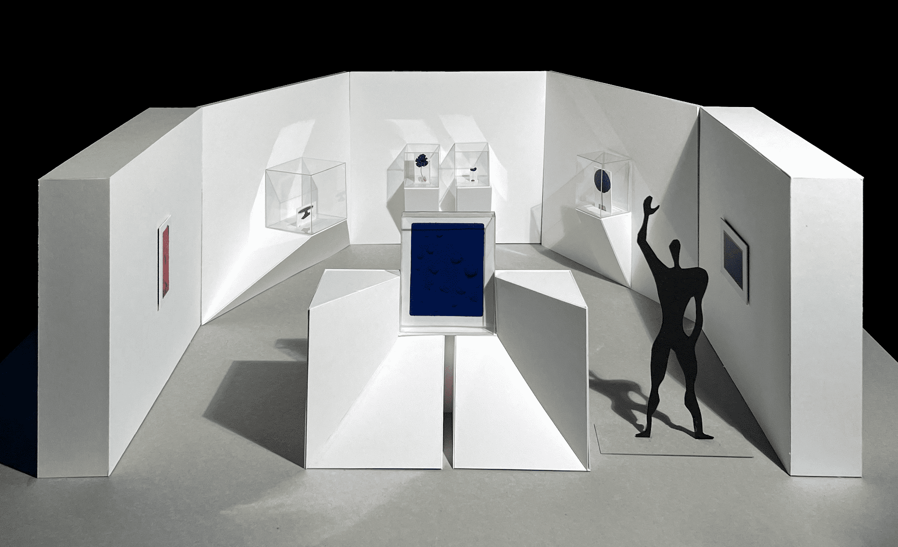 L’exposition met en lumière une soixantaine d’œuvres. Le Vide, pour Yves Klein, est une exploration de l’immatériel, influencée par la philosophie zen et matérialisée par les monochromes bleus, des empreintes corporelles et des œuvres de feu.