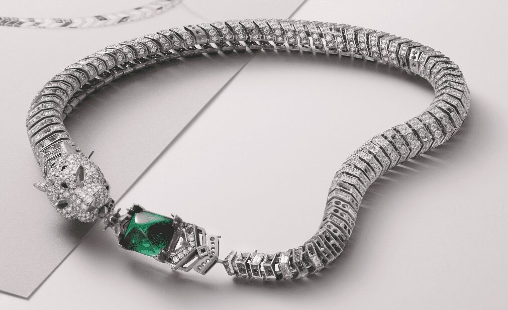 Animal emblématique de la maison, la panthère se dévoile ici sous diverses formes, se transformant en un bijou transformable. S’enroulant avec élégance autour du cou, le fauve se révèle le gardien d’une somptueuse émeraude de Zambie de 10,10 carats. Une création audacieuse, qui illustre une fois de plus le savoir-faire d’exception de Cartier lorsqu’il s’agit d’honorer le règne animal.