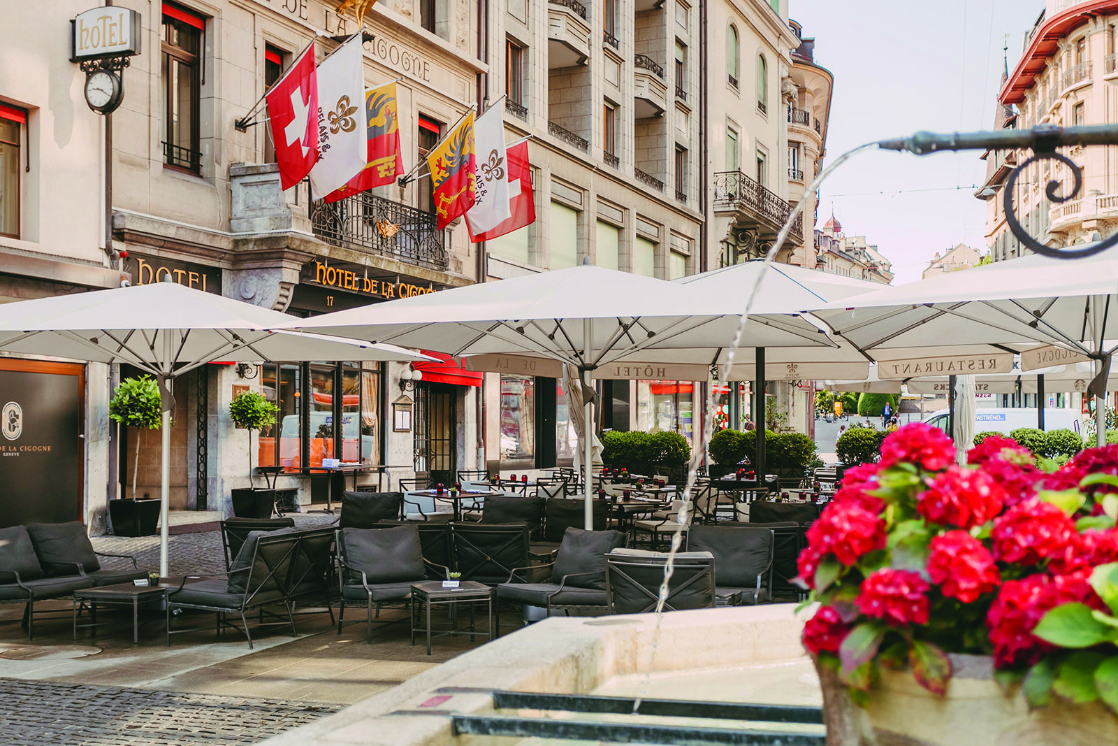 Sur la paisible et historique place Longemalle, les terrasses du Restaurant de la Cigogne et de Balila sont de retour pour une nouvelle saison, invitant à une expérience gastronomique sous la douce brise printanière de Genève.