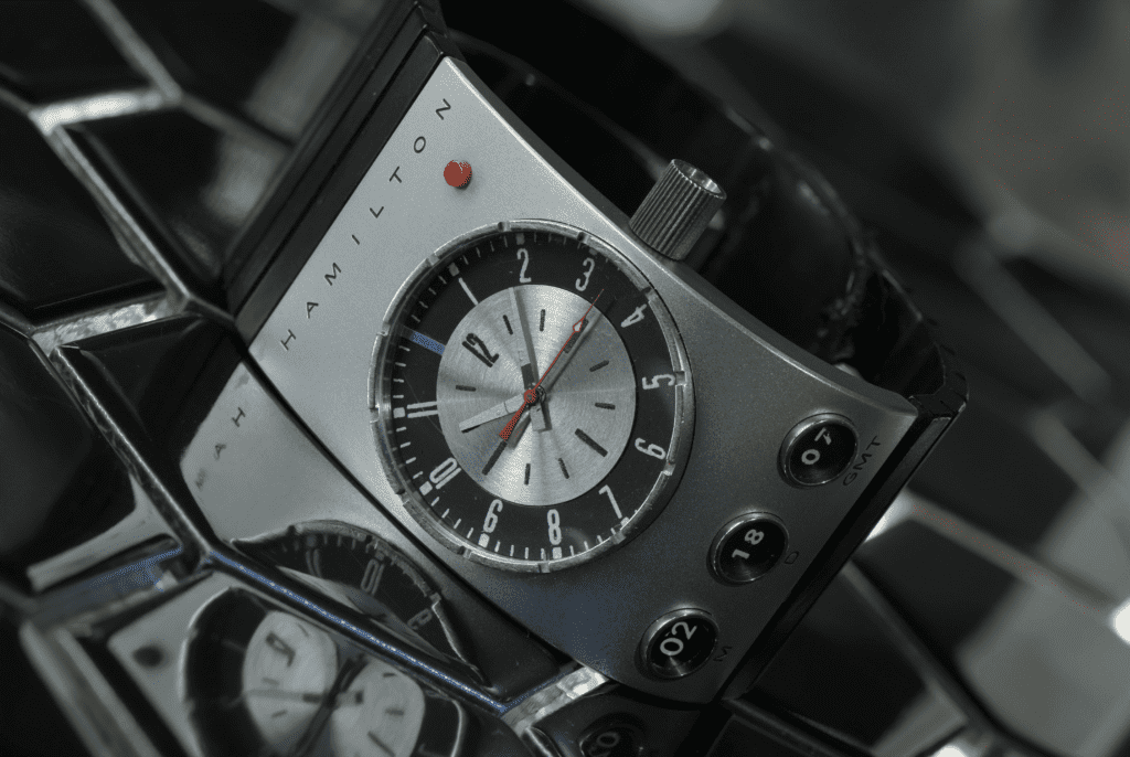 L’histoire commence avec Stanley Kubrick, qui commande à Hamilton des modèles futuristes pour 2001, l’Odyssée de l’espace (1968). Résultat ? Une montre et une horloge, totalement inédites, au design spatial, jamais commercialisées… mais entrées dans la légende.