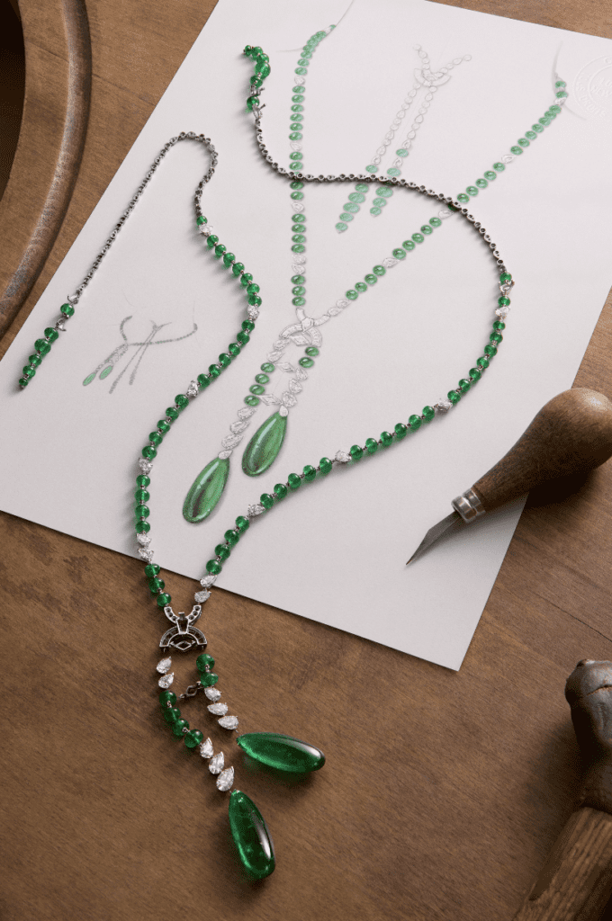 Intitulée En Équilibre, la collection de haute joaillerie 2025 de Cartier explore l’harmonie et la réconciliation des forces contraires. Se jouant des contrastes de couleurs, des différences de volumes, du dialogue entre le vide et le plein, cette collection a requis près de 100’000 heures de travail. Né de deux gouttes d’émeraude de Zambie de 49,37 carats, le collier Shito illustre ce véritable jeu d’équilibre à travers une asymétrie entre diamants et émeraudes. La justesse de la ligne révèle ce rien de trop qui fait tout le style créatif de Cartier.