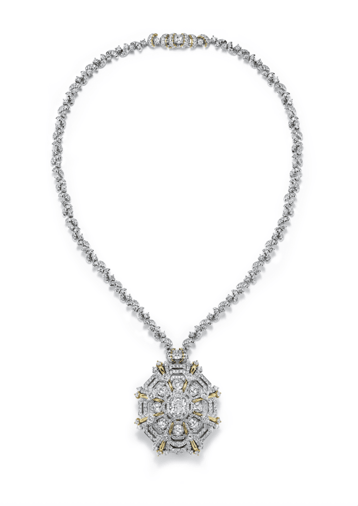 Présentée pendant la Semaine de la haute couture à Paris, la collection de haute joaillerie ‘1963’ de Graff révèle une nouvelle facette du joaillier. Audacieux et inspiré des sixties, ce nouvel opus replonge dans une décennie où liberté, glamour et esprit rebelle se mélangeaient pour ne faire plus qu’un. Ode au diamant et au savoir-faire particulier de Graff, ‘1963’ présente des designs novateurs d’une grande technicité. Les courbes elliptiques des différentes pièces offrent un effet presque psychédélique, où les différentes tailles de diamants forment une boucle lumineuse quasi infinie.