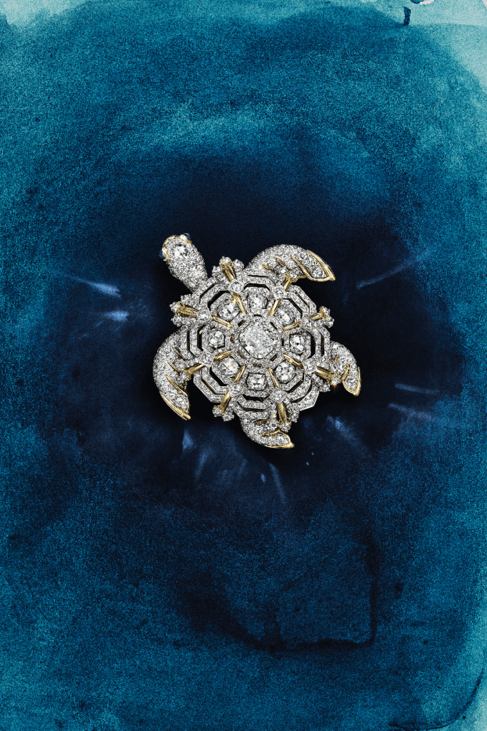 Imaginée par Nathalie Verdeille, directrice artistique de la joaillerie Tiffany & Co., la collection de haute joaillerie Blue Book 2025: Sea of Wonder rend hommage à la beauté des profondeurs marines. Dans cette exploration d’un monde éthéré où flore aquatique et faune discrète se dévoilent avec délicatesse, les gemmes évoquent les reflets changeants de l’océan et les créatures irisées qui l’habitent. «Flore océanique», «Hippocampes», «Étoile de mer», «Oursin» et «Vagues» célèbrent la richesse et la diversité de cet univers. L’esprit novateur de la maison se manifeste notamment à travers le pendentif Tortue de mer, transformable en broche et orné de détails en or et diamants.