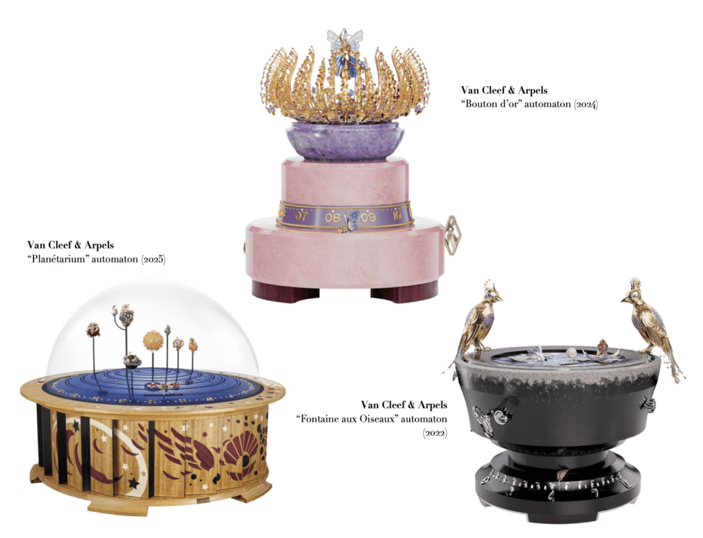 Mêlant tradition, innovation et savoir-faire d’excellence, Van Cleef & Arpels témoigne de l’ingéniosité de ses artisans, qui maîtrisent, affinent et partagent leurs gestes souvent multiséculaires. Pour susciter l’émerveillement, Van Cleef & Arpels puise dans ses sources d’inspiration et dans son héritage, afin de développer de nouvelles techniques au service d’une vision distinctive du temps qui passe. Fidèle au Temps Poétique qui lui est propre, Van Cleef & Arpels insuffle à chaque automate une dimension de rêve et d’émotion.