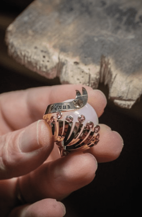 Se distinguant par ses importantes dimensions, l’automate Planétarium met en scène le Soleil et les planètes de son système visibles à l’œil nu depuis la Terre. Grâce à un mouvement mécanique complexe, chaque astre se déplace conformément à son temps de rotation réel. La Lune tourne elle-même autour de la Terre en 27,3 jours, animant l’objet d’un mouvement perceptible jour après jour. L’objet de table, doté d’un module planétarium ainsi que d’une animation à la demande permet de faire danser les astres autant de fois que souhaité. Sous le globe de l’automate – soufflé sur mesure pour l’objet –, une scène poétique prend vie. Au déclenchement de l’animation, une étoile filante fait son apparition en sortant d’une trappe et survole l’objet pour indiquer l’heure et les minutes sur un cadran 24 heures. Elle entraîne avec elle les planètes dans un ballet accompagné d’une mélodie cristalline.