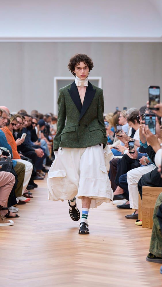 Chez Dior, l’arrivée de Jonathan Anderson marque un tournant. Habitué des contrastes chez Loewe, il dirige désormais toutes les lignes, y compris la haute couture. Son premier défilé masculin a posé le ton: vestes Bar revisitées, pulls irlandais, cargos oversize et sacs inspirés de grands classiques littéraires. Une esthétique érudite et ironique qui redonne souffle à la maison.