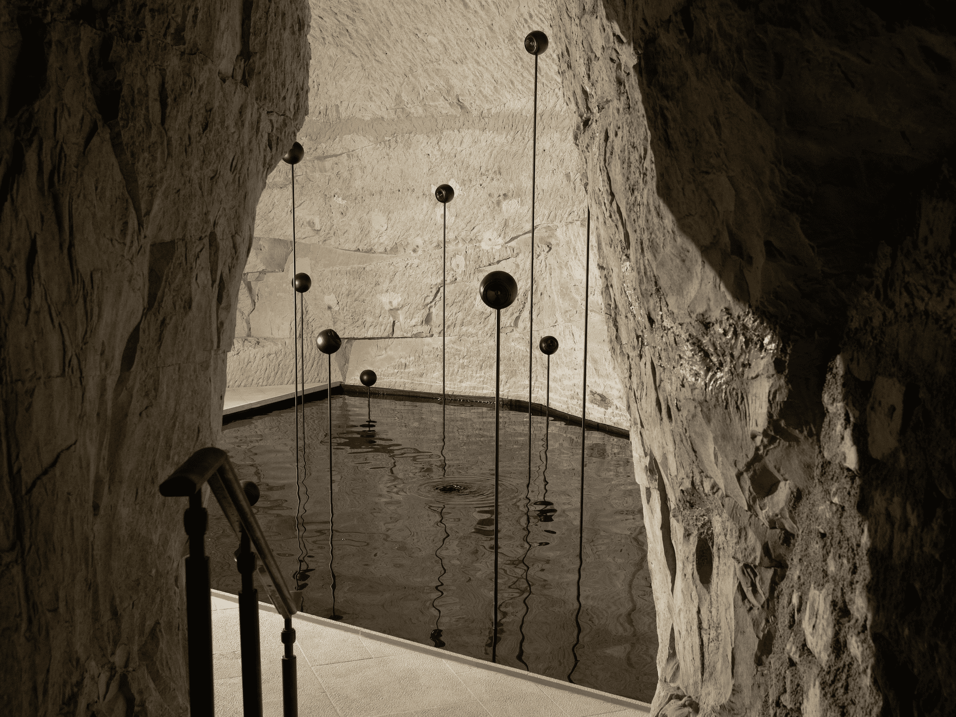 Avec Ruinart, le lien était à la fois personnel et artistique : ma mère est champenoise, et j’ai un intérêt profond pour la géologie. Lors de ma visite, j’ai été moins marqué par le parc de sculptures que par les crayères souterraines. J’ai proposé de créer une œuvre en lien avec cette mer du Lutétien, vieille de 60 millions d’années, et de la faire dialoguer avec les enjeux environnementaux actuels. La pièce, permanente, a été produite grâce à leur soutien, et certaines recherches menées pour ce projet ont également nourri mes œuvres présentées au musée Tinguely.