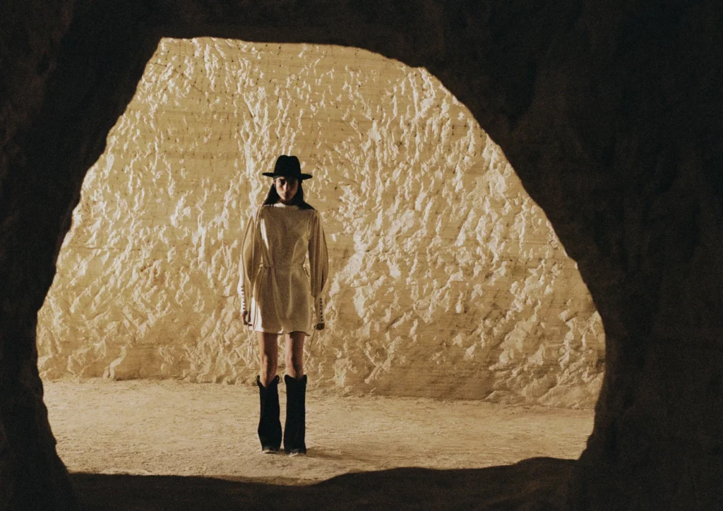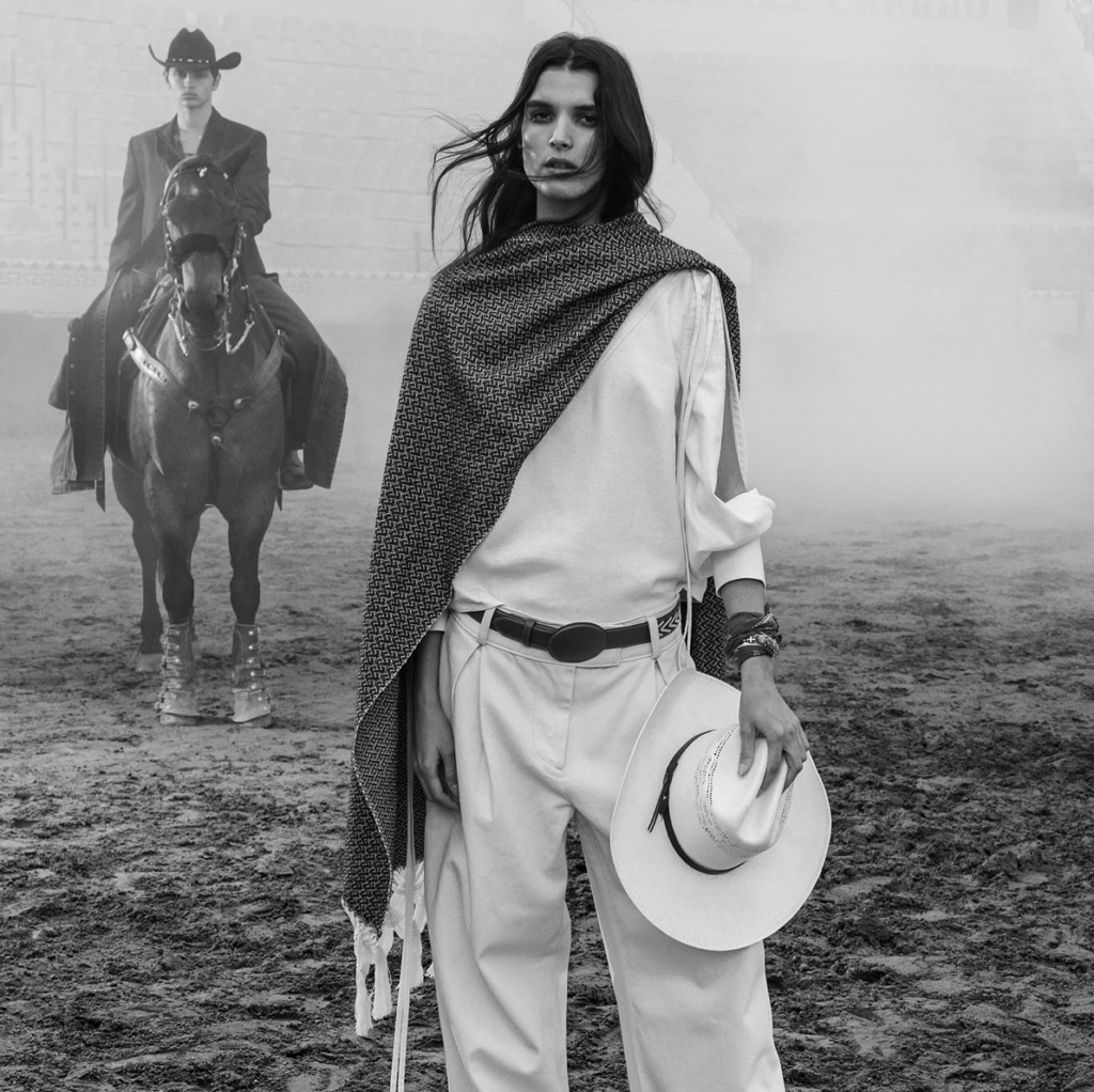 Je trouve des idées partout. Nous nous plongeons profondément dans la narration, et je crée un tableau d’ambiance complet à partir de références visuelles, en m’inspirant des artistes et des stars de cinéma que j’ai mentionnés plus tôt, ainsi que des paysages. Le Mexique est un pays débordant de couleurs vives, qui reflètent notre riche culture et notre esprit vivant. En même temps, nous sommes profondément connectés à la nature et à la terre qui nous nourrit. Dans cette optique, nous avons choisi d’explorer une palette de couleurs plus organique, avec des tons terreux inspirés des paysages désertiques. Notre intention était de rendre hommage aux origines du Mexique, là où tout commence, dans les champs, parmi le maïs, le coton et le lin.