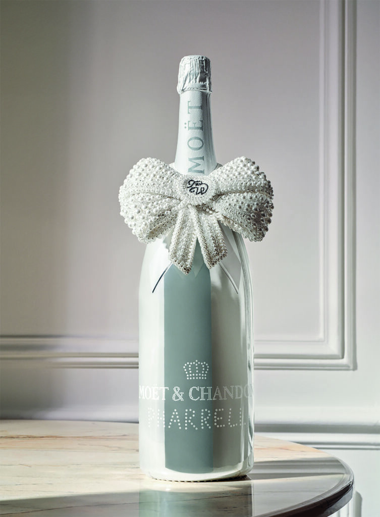 L’icône de la musique, du design et de la mode Pharrell Williams signe une collaboration unique avec Moët & Chandon, mêlant tradition, innovation et savoir-faire d’exception. Connu pour son approche avant-gardiste, il insuffle ici une vision contemporaine au patrimoine de la maison champenoise. En explorant ses archives, il a redécouvert un détail oublié: un élégant nœud qui ornait autrefois les bouteilles en 1892. S’en inspirant, il a imaginé un design audacieux, réinterprétant ce symbole avec un nœud oversize orné de perles, réalisé par des artisans d’exception.