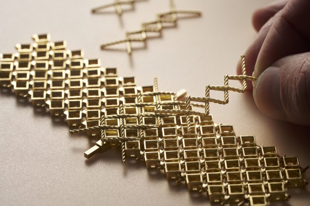 En misant sur une matière millénaire, la maison transpose dans ses créations l’esprit d’une époque d’insouciance et de positivité, animée par les soirées du Studio 54 et libérée du formalisme des années 1950. L’or incarne plus que jamais la réussite décomplexée, l’aboutissement personnel et l’expression de soi.