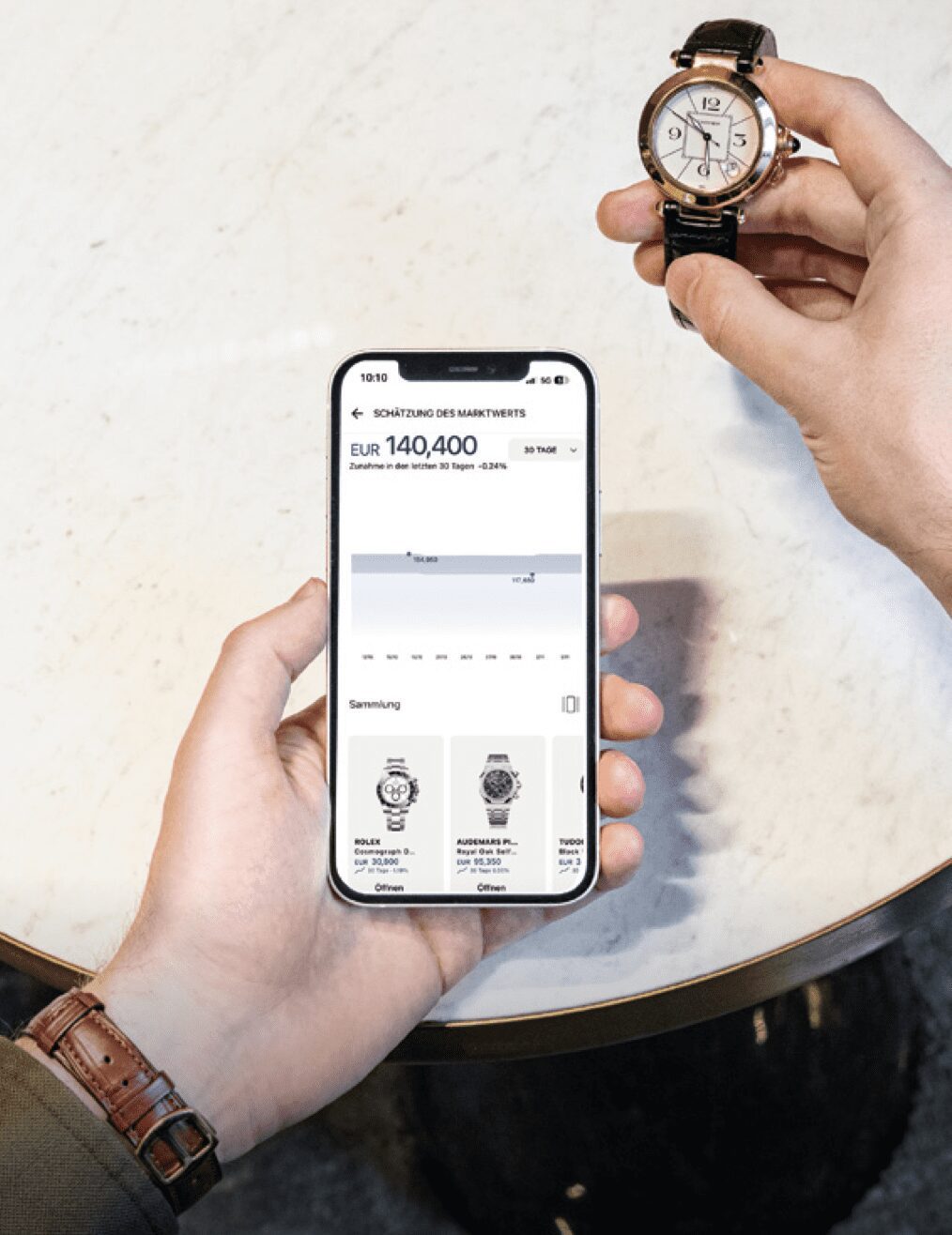 les utilisateurs ont la possibilité également de consigner d’importants documents et photos de leur portefeuille, d’afficher les données actuelles du marché sur la base des montres déjà portées, ou encore d’assurer rapidement et facilement leurs acquisitions. Par ailleurs, toutes les montres Certified Pre-Owned (CPO) peuvent être proposées à la vente chez Bucherer.