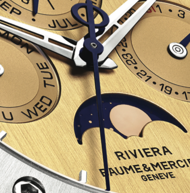 Mais comment réinterpréter une grande dame sans trahir son ADN? Là était tout le challenge relevé sans difficulté par la maison horlogère en début d’année. Hommage à l’esprit libre, les loisirs nautiques et les fêtes que l’on ne vit que sur la Riviera, la nouvelle montre a été travaillée en deux versions: un Quantième Perpétuel Baumatic d’une grande complexité et une Edition Spéciale 50ème Anniversaire d’un bleu envoûtant. La version Quantième Perpétuel Baumatic limitée à 50 pièces séduira celles et ceux qui aiment faire rimer haute horlogerie avec décontraction.