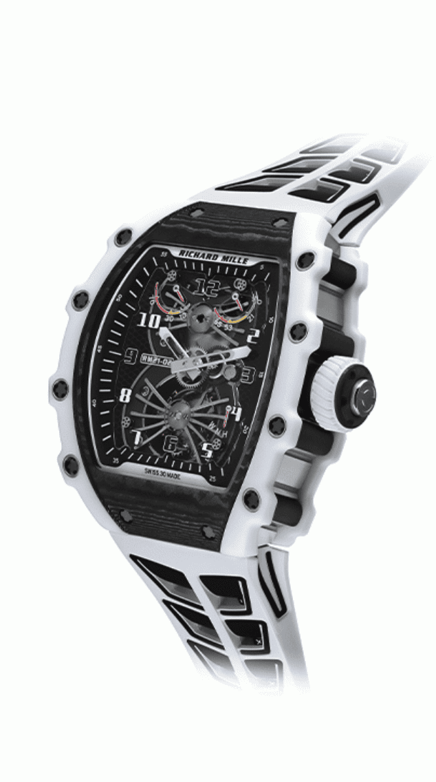 Le motif géométrique en nid d’abeilles de cet alliage a fait l’objet de recherches par la NASA concernant les ailes d’avions supersoniques. Ces deux matériaux incarnent donc assurément les concepts d’air et de vitesse. Le boîtier de la RM 21-02 présente une remarquable complexité architecturale, associant avec harmonie le Quartz TPT® et le Carbone TPT® à une carrure en Titane. Cette construction fait du boîtier de la RM 21-02 l’un des plus sophistiqués jamais conçu par la marque.