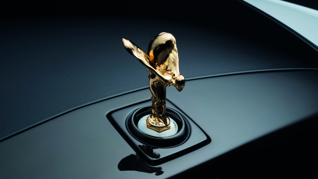 L’extérieur de la Phantom Centenary Private Collection conjugue sophistication et hommage à l’âge d’or de l’automobile. La carrosserie bi-ton offre un effet métallisé unique, obtenu grâce à l’incorporation de particules de verre finement moulues. La célèbre Spirit of Ecstasy, inspirée de la première Phantom de 1925, est ici réinterprétée en or massif et émaillée, complétée par des badges et des roues en or 24 carats, soulignant le caractère exclusif de cette collection anniversaire.
