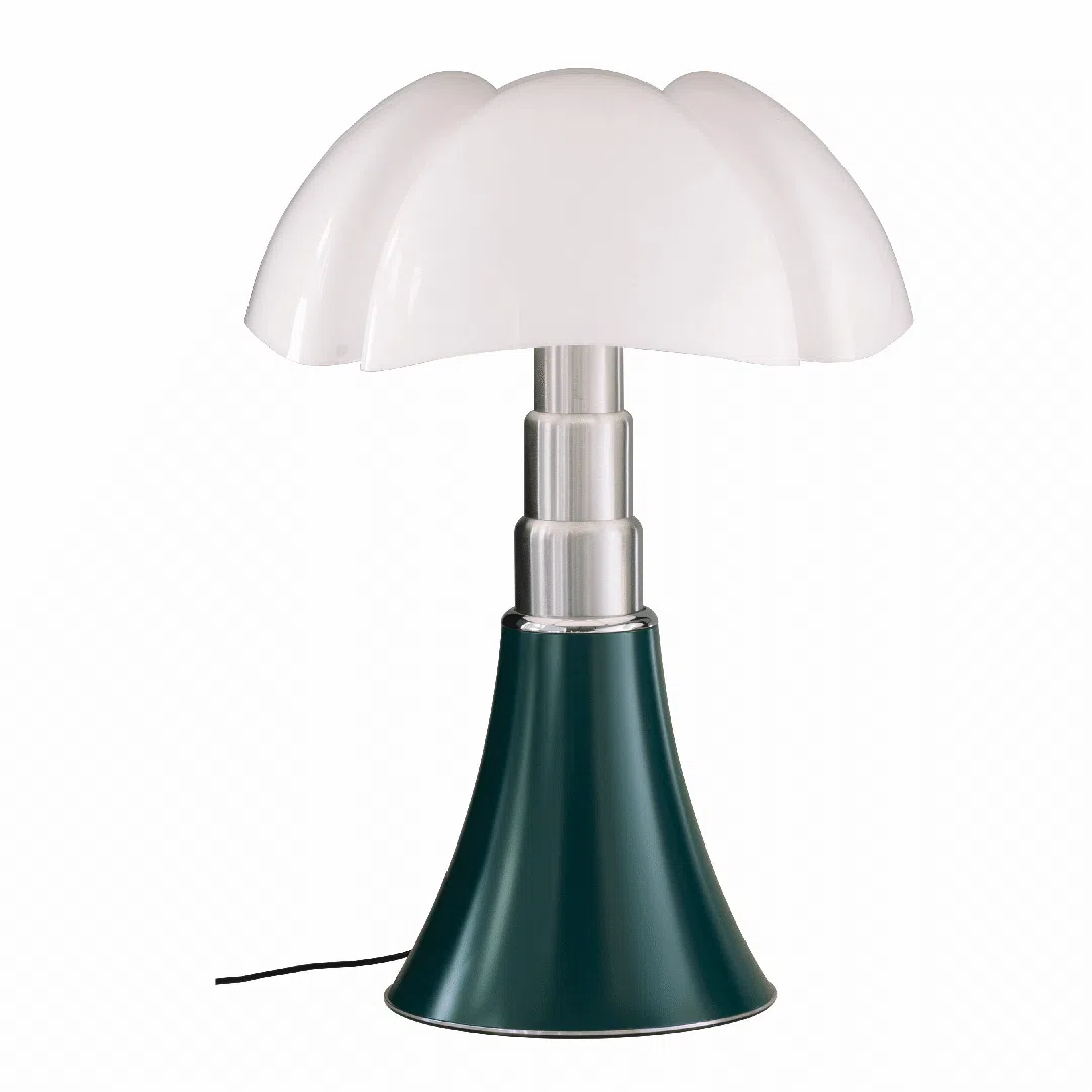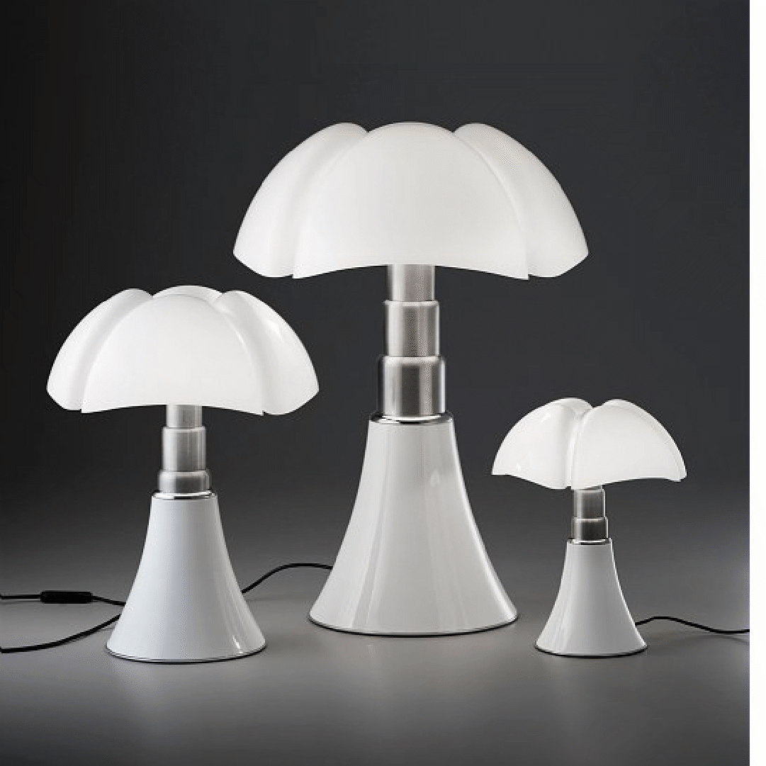 La lampe Pipistrello (ndlr. chauve-souris en italien), dessinée par Gae Aulenti en 1965 pour Martinelli Luce, séduit par son abat-jour ondulé en méthacrylate et son pied télescopique en métal. À mi-chemin entre lampe de table et lampadaire, elle incarne l’élégance modulable et le futurisme du design italien des années 60.