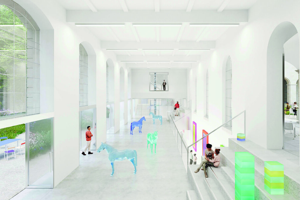 Nous sommes en 2035, les travaux sont terminés. Marc-Olivier Wahler nous ouvre les portes du nouveau MAH. Le directeur décrit un lieu «plus poreux, traversé par des formats qui ne se limitent plus à l’exposition. Des laboratoires, des conférences performatives, des studios ouverts, des collaborations avec des écoles, mais aussi des moments de repos, de silence, de réflexion. Le MAH de demain est un lieu d’hygiène de l’esprit, où l’on peut aussi bien apprendre que désapprendre, expérimenter d’autres manières d’être ensemble. Il n’y a plus de séparation entre les usages: un même espace peut accueillir une œuvre, une discussion, une pause, une projection. Chaque recoin semble traversé par une même pulsation, une énergie créative, comme si le bâtiment lui-même partici- pait à l’élan collectif. Tout respire, tout se reconfigure en permanence. Le musée n’impose plus un parcours, il s’écoute comme une fréquence vivante, en résonance avec la ville et le temps présent.»
